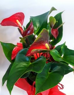 Anturium czerwone wys ok 50 cm-70 cm z przybraniem. W razie braku koloru , dostarczamy kolor dostępny .