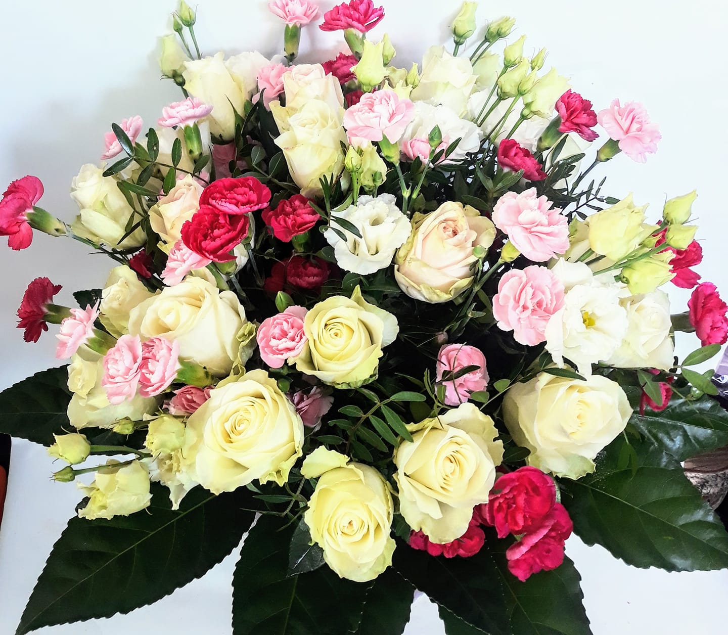 Duży bukiet z kwiatów mieszanych różą eustoma goździk gałązkowy z zielenią dekoracyjna