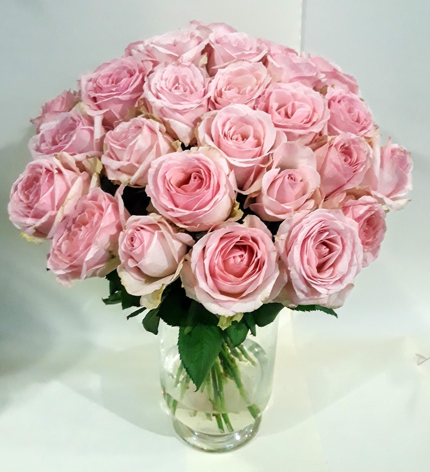 Bukiet 50 różowych róż średniej długości.