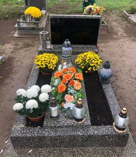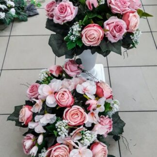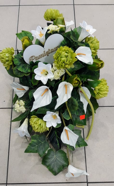 Dekoracja nagrobna wykonana z kwiatów sztucznych w ciężkim naczynku co zapewni stabilność i dekoracja nie bedzie fruwać przy wietrznej pogodzie . ZDJĘCIE PODGLĄDOWE- kolorystyka biało-seledynowa